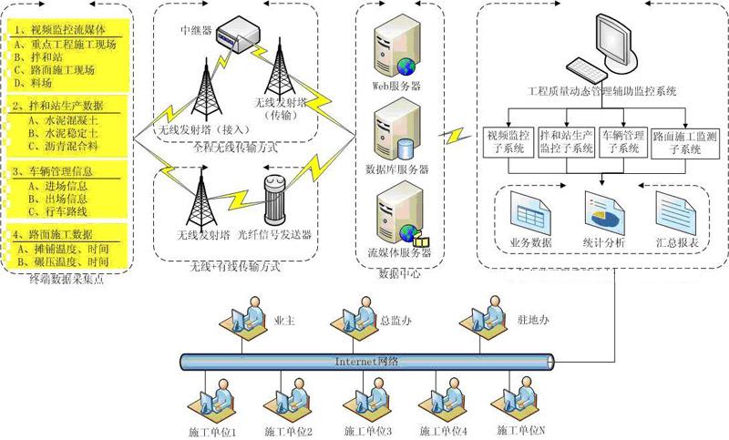 本系统可供质量监督管理机构、指挥部、项目部、试验室、拌和站现场等工程多级用户使用, 通过传感技术、移动通讯技术、互联网应用等,把工程中各拌和站生产的混凝土每一盘生产数据进行实时采集、无线传输、存储。为管理各方提供了详实有效的原始数据,并利用便利直观的数据图表呈现,使管理者对生产的实际状况一目了然。 混凝土拌和站智能监控系统可实时监测原料的配合比、拌和时间这两项最重要的参数,确保偶然或人为因素导致的生产误差,及时修正并且重新安排生产,确保水泥混凝土的最终生产质量。 系统功能包括: 拌和时间实时监控 材料用量实时监控 材料配比查询 拌和误差分析 混凝土产量核算 | ![]() |